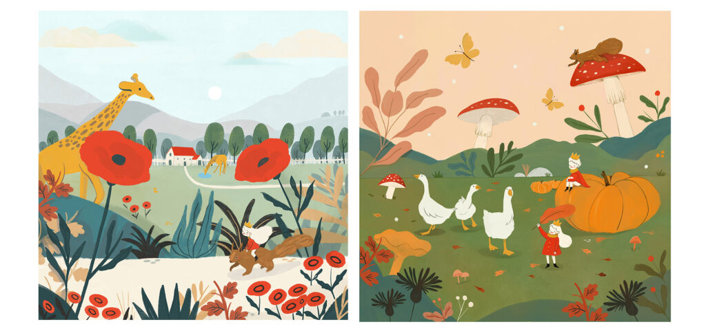 Sono illustratrice dal 2017. Subito dopo aver frequentato Officina B5, ho ricevuto la mia prima commissione da Giunti, con cui ho realizzato il mio primo libro di narrativa per la collana Colibrì. Scegliere questo settore è stato un gesto istintivo. Venivo da un periodo difficile, segnato da un intervento alla gamba, e proprio durante la convalescenza ho capito che ciò che mi faceva stare bene era disegnare, in particolare nel mondo dell’illustrazione per l’infanzia.